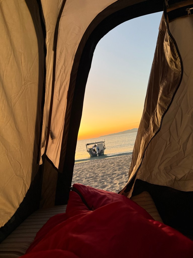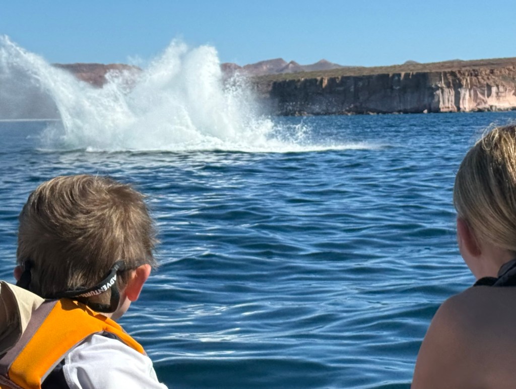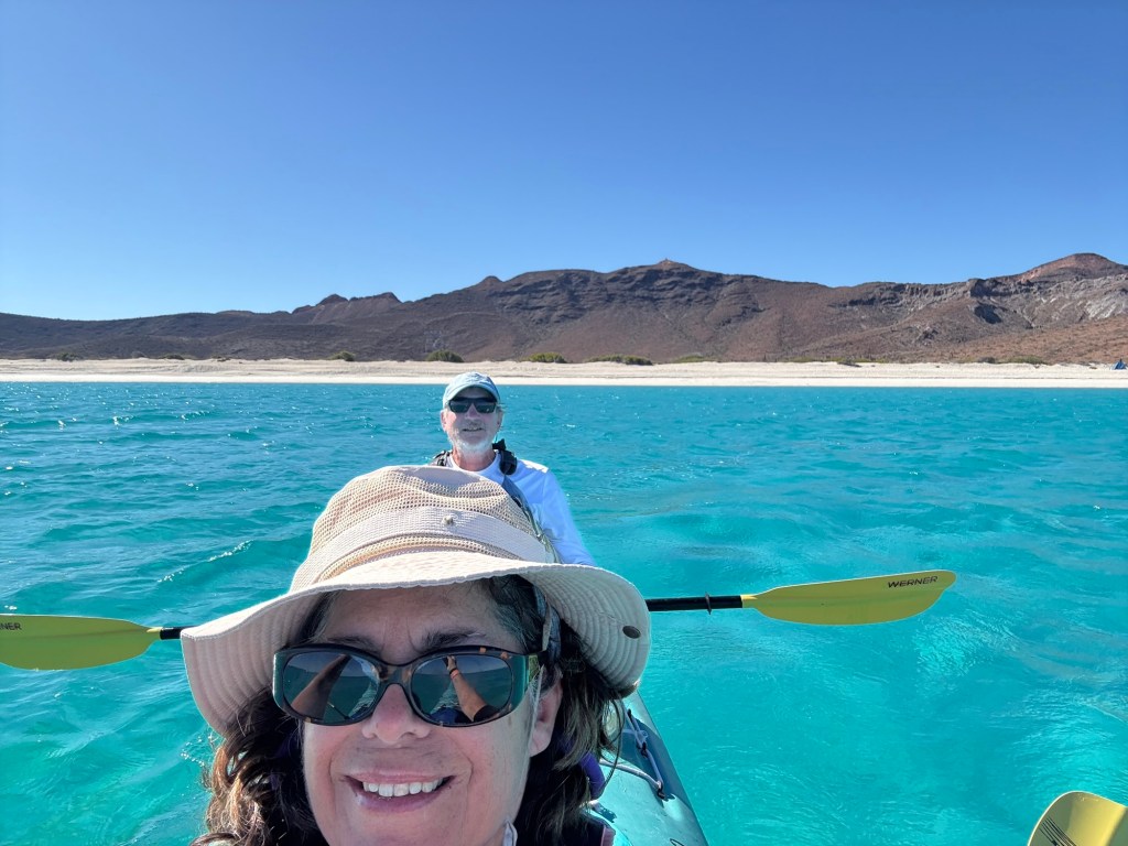 This really was a dream come true. As we returned to our hotel, our captain once again gently maneuvered us toward some beautiful humpbacks. We shared the moment with crowded day boating tours from La Paz. Our guide referred to them as refugee boats. We laughed but I also felt so very sad. I said…. “At least they are doing it! “ They are experiencing it. (Get in the bucket as John Muir would say). Though not ideal, I thought likely there are kids on that boat that will have a dream. Someday maybe they will sleep on the beaches of Espíritu Santo. Seriously I had tears in my eyes then and I do again as I write this. A dream come true…